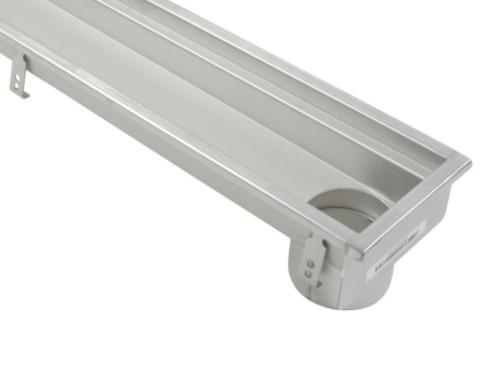 RENDE 150x1500 ENDEUDLØB -Gulv: beton, fliser og epoxy -Uden membran -Udløb: Ø110 mm, lodret -Rustfrit stål: AISI304/EN1.4301