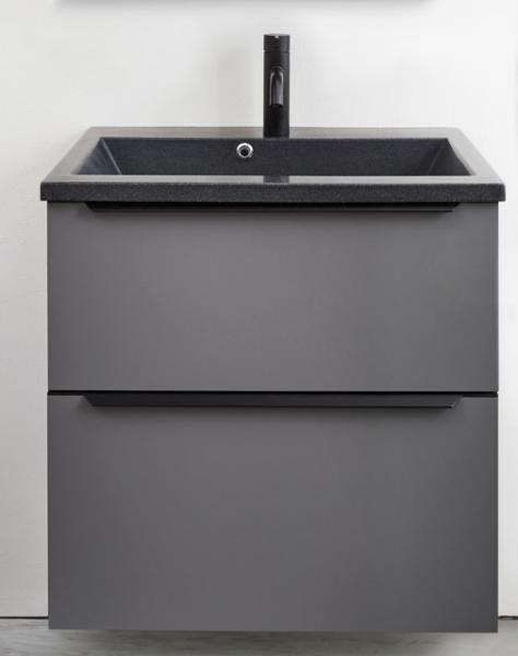 Cassøe Soft 60 møbelsæt m/granitsort vask - Mat grå Stilrent badmøbel i mat grå med flotte sort oxideret greb. Den mat grå overflade er med fedfingerfri folieoverflade.