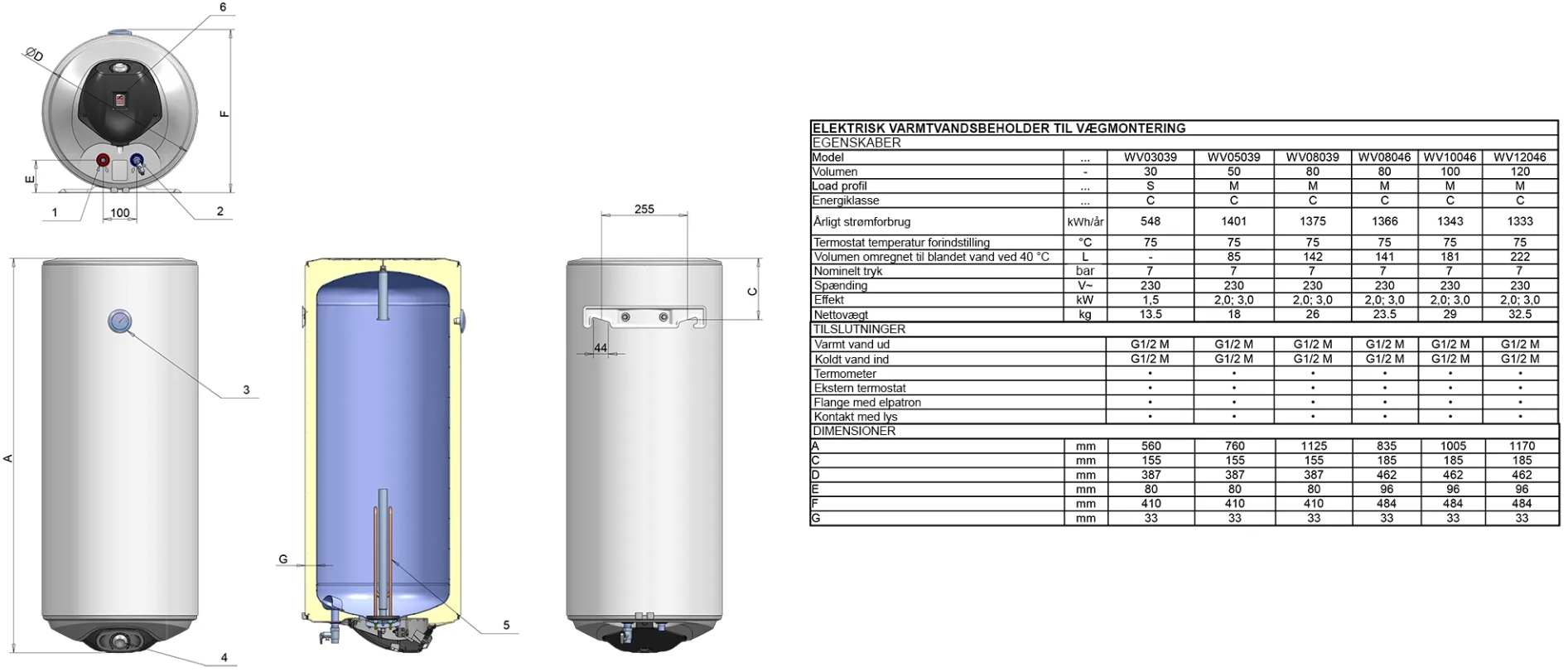 Effektiv væghængt varmtvandsbeholder / vandvarmer fra ELDOMINVEST