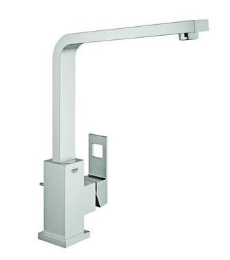 GROHE Eurocube køkkenarmatur: overlegen teknologi i et superflot design Med et rent design karakteriseret af lige linjer og firkantede former giver dette køkkenarmatur i GROHE Eurocube sortimentet dit køkken en markant profil. Den høje tud, der både er visuelt tiltrækkende og praktisk, gør det muligt for dig at fylde eller rengøre høje gryder uden det mindste besvær. Svingfeltet på 360° giver optimal fleksibilitet. Den integrerede GROHE SilkMove® teknologi sikrer en jævn og ubesværet styring af vandtemperaturen og -mængden. Takket være vores brugervenlige installationssystem kan du nemt og hurtigt installere dette blandingsbatteri til køkkenvask. Nyd et kubisk look, der er perfekt hele vejen rundt.