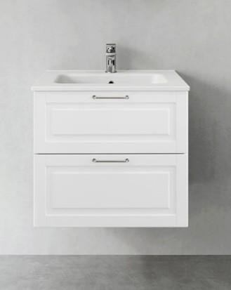 Hafa Grace 60 møbelsæt m/vask - Mat hvid ramme Komplet badeværelsesskab med håndvask. Hafa Grace er et badeværelsesmøbel med smukt profilerede fronter designet til at passe ind i både et landligt og et moderne badeværelse i skandinavisk stil. Består af