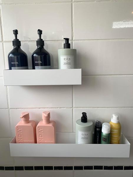Kriss Athena hylde 30 cm - Hvid Helt minimalistisk hylde til badeværelset fra Kriss. Er du vild med enkle linjer og helt forsimplet design, der formår at være funktionelt og praktisk? Så er denne brusehylde nok noget for dig. Brug den i bruseren, ved badekarret eller ved håndvasken. Hylden er aftagelig, hvilket betyder at du kan tage hylden ned for at rengøre den - uden at skulle afmontere den helt. Giv plads til shampoo, parfume og cremer på væggen, hvor det er nemt at komme til. Specifikationer: