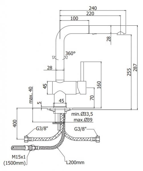 Lavabo Kubus 040 køkkenarmatur m/udtræk - Bruneret messing Kubus 040 er et køkkenarmatur med en praktisk udtrækkelige tud/dyse som letter rengøringen af f.eks. bageplader og køkkenvasken. Armaturet er i et moderne design hvor de lige linjer og det elegante rundt greb fuldender formsproget som passer perfekt til den minimalistiske skandinaviske indretnings stil. Leveres med vandbesparende perlator. Perlatoren blander vandstrålen med luft og virker derfor vandbesparende. Når vandstrålen blandes med luft føles det hårdere og dermed er det muligt, at vaske sig med eller skylle af med et lavere vandtryk og dermed et mindre vandforbrug. Armaturet har to strålefunktioner, som vælges på knappen under den udtrækkelige tud.