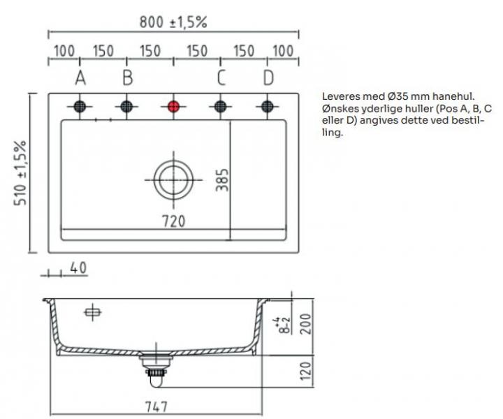 Lavabo Mera 90 porcelænskøkkenvask - Vask til højre/krom afløb OBS: Min. 30 mm bordpladetykkelse. Mera 90 er en enkeltkumme vask med højre vendt bakke til nedfældning. Vasken er et 100% naturprodukt bestående af ler og glasur. Udover det enkle og tidløse design har vasken en kanthøjde på kun ca. 8 mm, hvilket skaber en elegance og lethed. Materialet og produktionsmetoden gør at vasken både er antibakteriel, ridse- og syrefast. En meget slidstærk vask. Specifikationer: