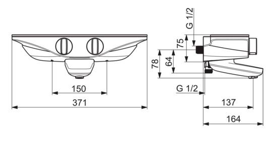 Termostatisk kar- og bruserarmatur med betjeningsvenlige greb. Temperaturbegrænser integreret i selve grebet. Rummelig hylde udført i sikkerhedsglas. Armaturet er udstyret med lige forskruninger med afspærringsventiler samt smudsfiltre og kontraventiler.