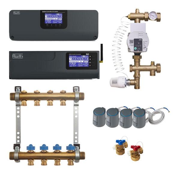 1 stk. Roth shunt med termostatisk ventil og Wilo Para 15-130/6 pumpe 1 stk. Roth Softline Master 8 kredse + 1 stk. Softline udvidelses modul 8 kredse Ønsker du styring af systemet via app. skal der tilkøbes Wifi internet modul |