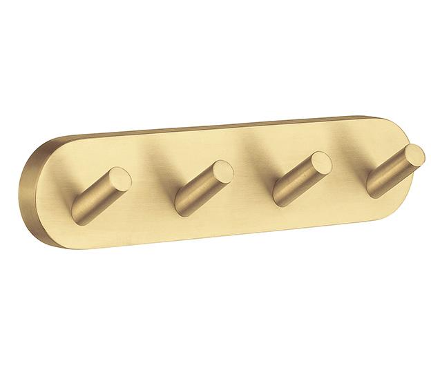 Smedbo Home fire håndklædekrog - Børstet messing OBS: Varen er på lager - både til afhentning og dag-til-dag levering Den flotte messingfarve er en slidstærk PVD-belægning, som i tonen matcher armaturer fra store mærker som Grohe og Damixa.