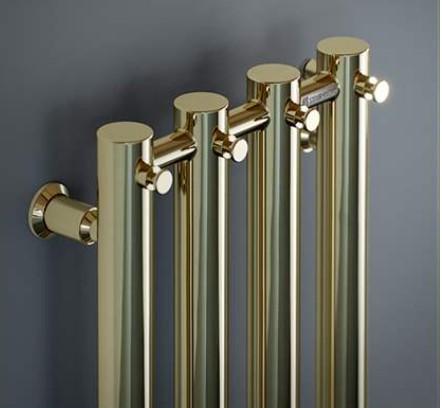 Strømberg Regus håndklædetørrer - 26,6x150 cm - Poleret messing Strømberg Regus håndklædetørrer til central/fjernvarme. Regus er en yderst elegant og eksklusiv design radiator. Klare linier i et innovativt og unikt design - forskønnet med 8 praktiske kroge.