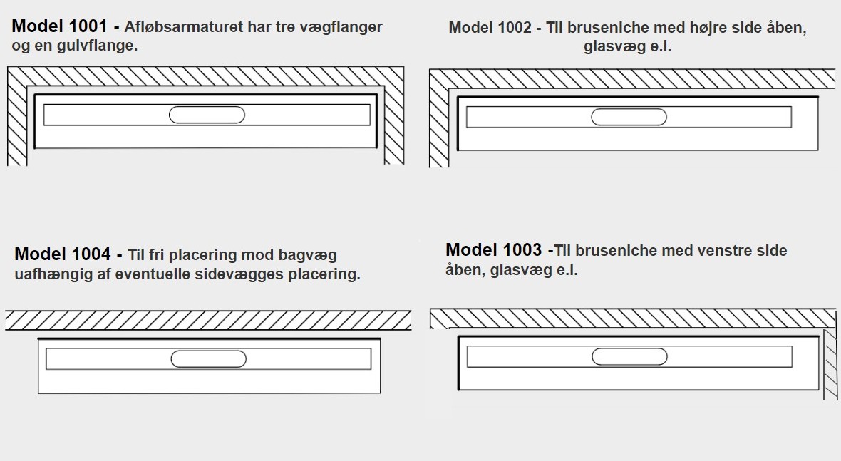 Udløbshus og afløbsarmatur skal tilkøbes, se relaterede varer Se Guide for hvilke afløbsarmatur der passer til dit ønske/placering Ønskes en trævlesi for nemmere rengøring, så kan den tilkøbes, se relaterede varer |
