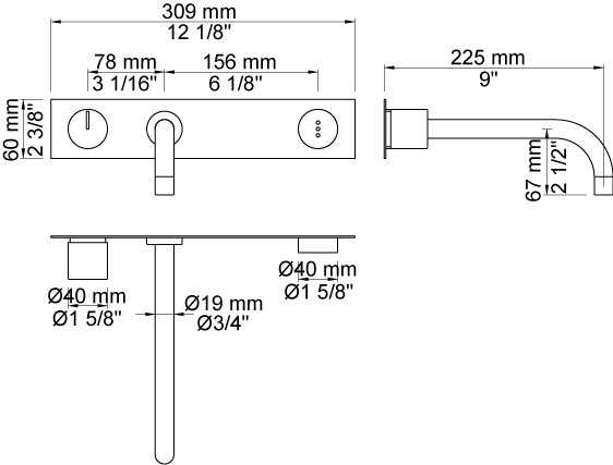 Vola Indbygningsblander til berøringsfri betjening Dækplade Rustfrit stål 40 ½''RG |