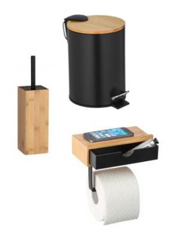 Wenko Bambusa tilbehørspakke til bad - Bambus/sort Lækker tilbehør til badeværelset i bamus og sort Består af