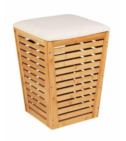 Wenko Bambusa vasketøjskurv/skammel - Bambus Bambusa vasketøjskurv med pude er en elegant tilføjelse til badeværelse, der løfter badeværelsesindretningen med sit flotte design. Skamlen udgør et praktisk element, og det er den ideelle 2 i 1 løsning til badeværelset. Når sædet løftes, er der adgang til en vasketøjskurv til det brugte tøj. Vasketøjskurven er lavet af bambus med en polstret siddeplads. Skamlen kan maksimal holde til en belastning på 120 kg.